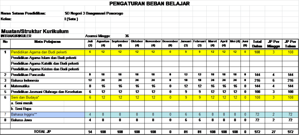 - Sekolah menambah 2 jam pelajaran dari struktur kurikulum nasional untuk setiap kelas