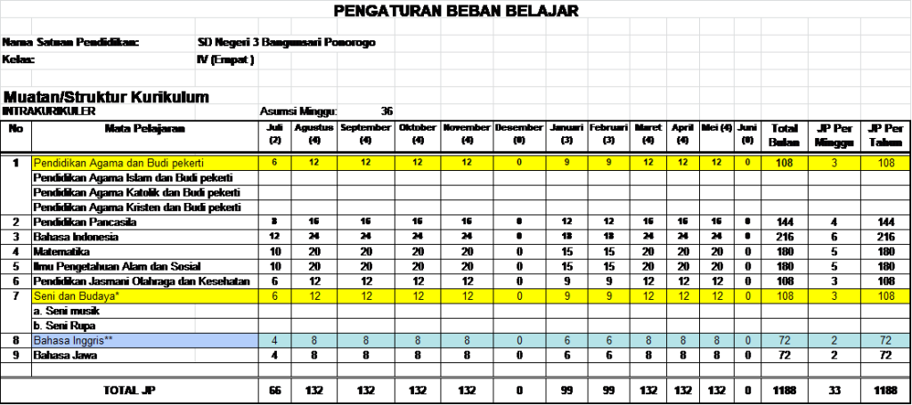 - Penambahan jumlah jam digunakan untuk Muatan Lokal wajib yaitu Muatan Lokal Bahasa Jawa